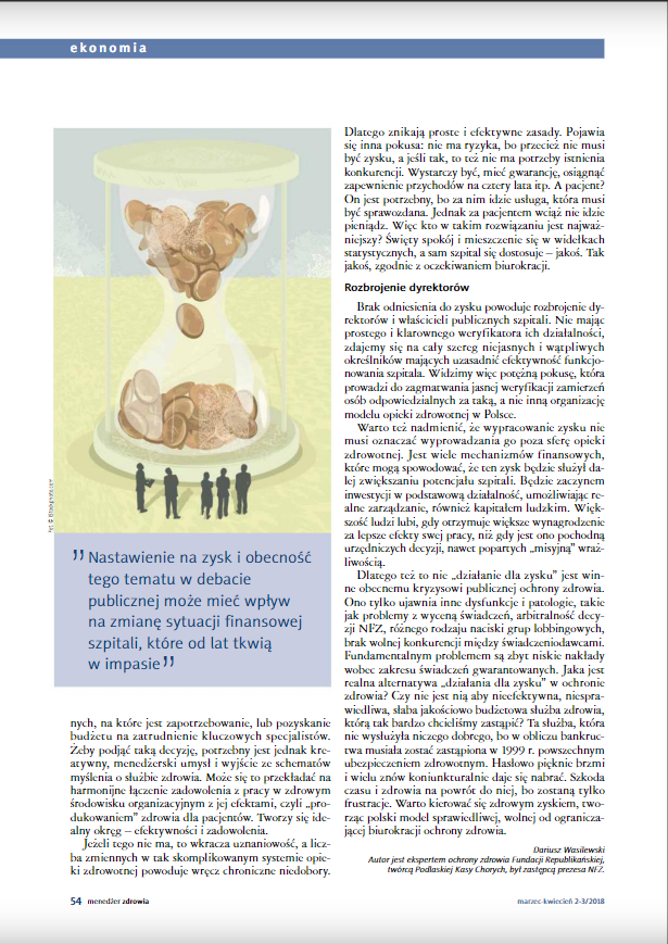 Artykuł Dariusza Wasilewskiego, który ukazał się w czasopiśmie "Menedżer zdrowia" nr 2-3/2018